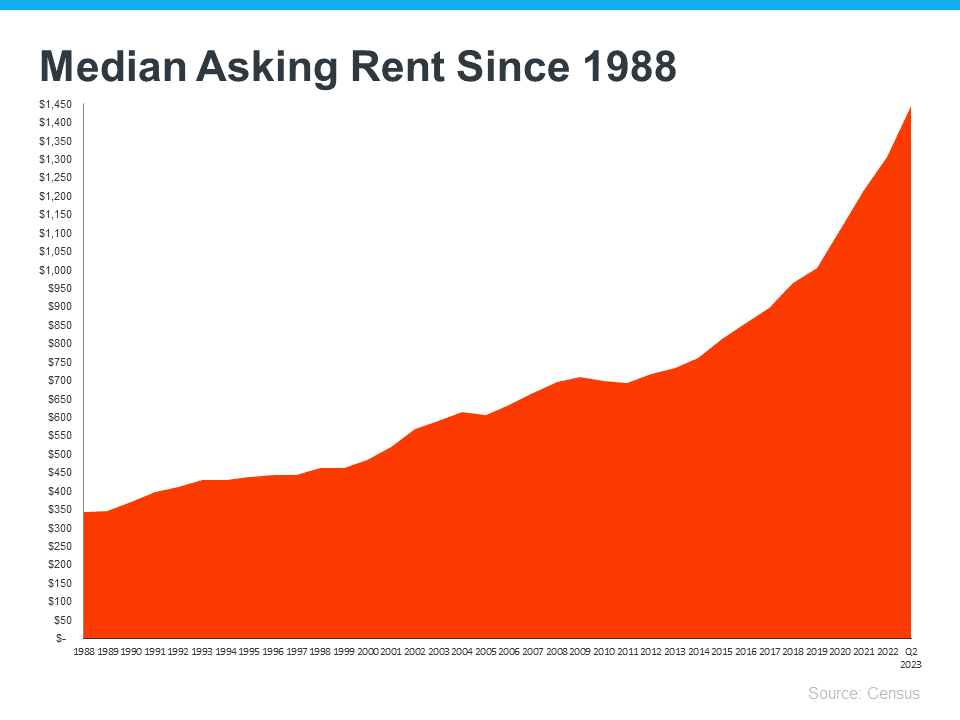 The graph below uses data from the Census to show how rents have been climbing steadily since 1988: