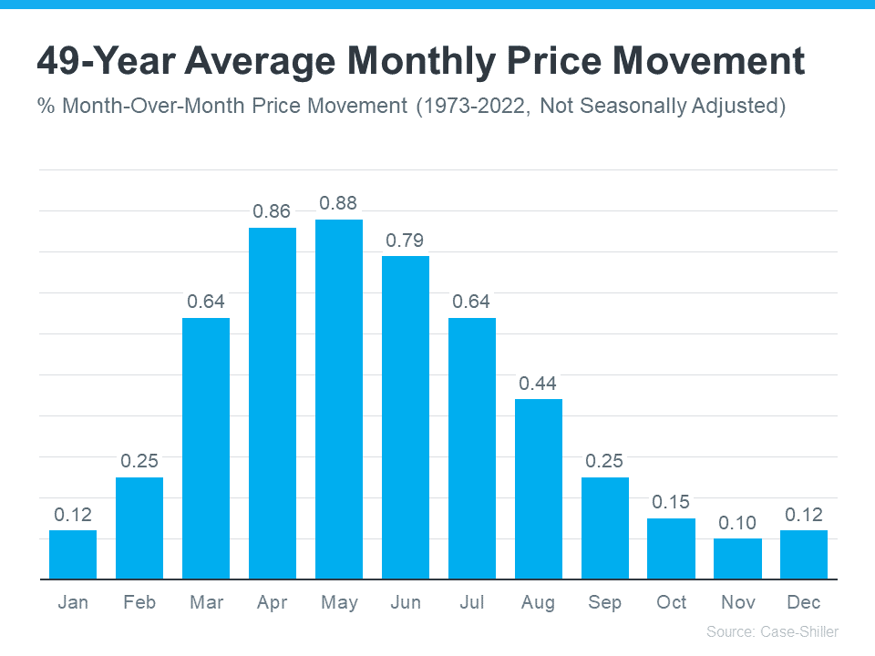 In the housing market, there are predictable ebbs and flows that happen each year. It’s called seasonality. Spring is the peak homebuying season when the market is most active. That activity is typically still strong in the summer but begins to wane as the cooler months approach. Home prices follow along with seasonality because prices appreciate most when something is in high demand.