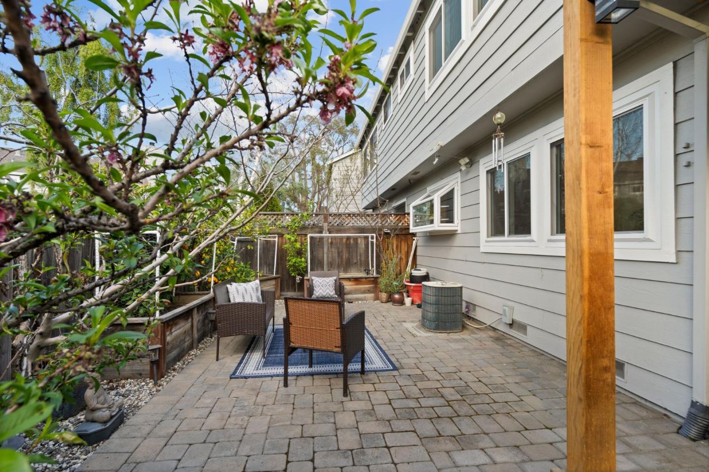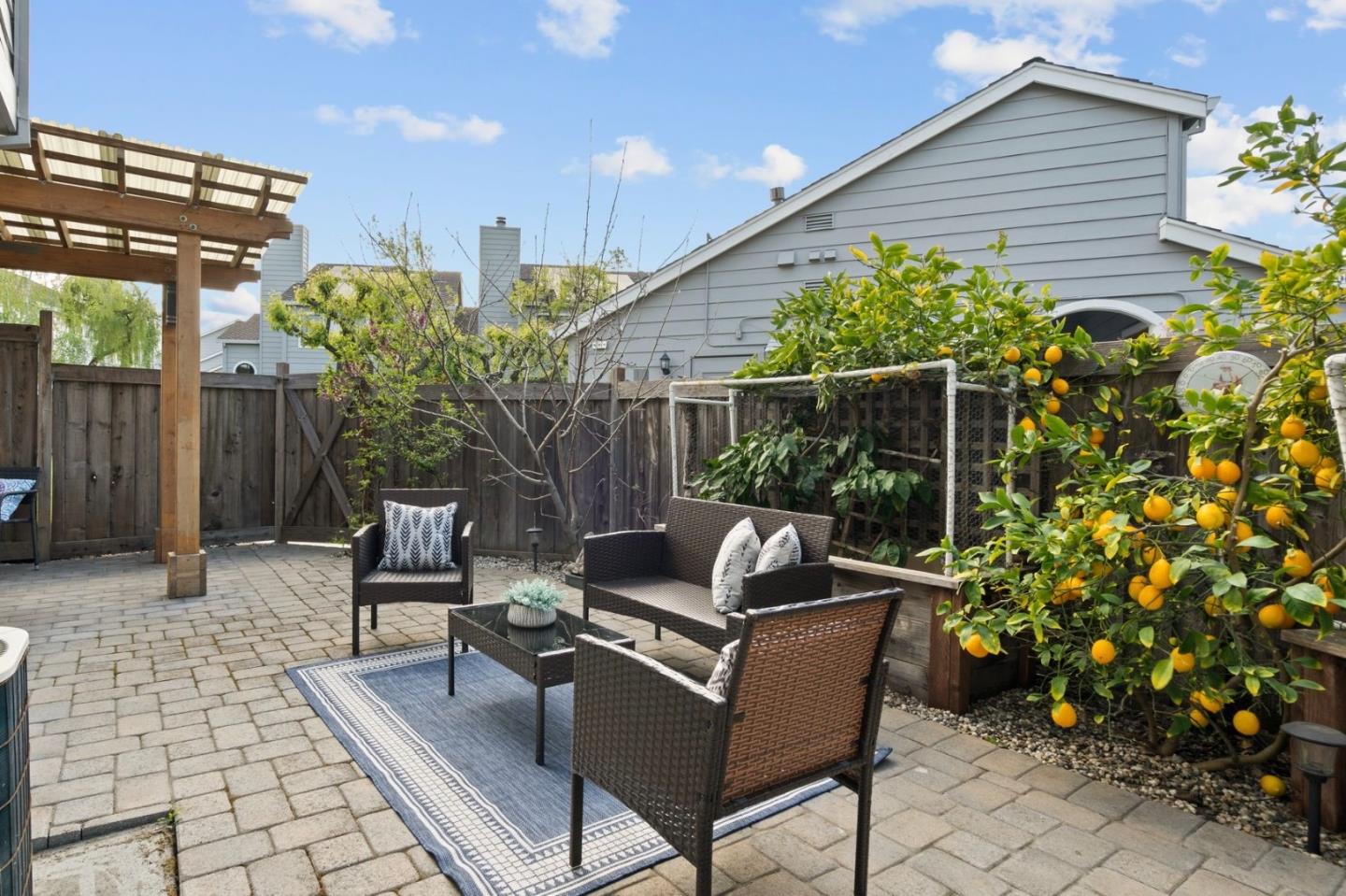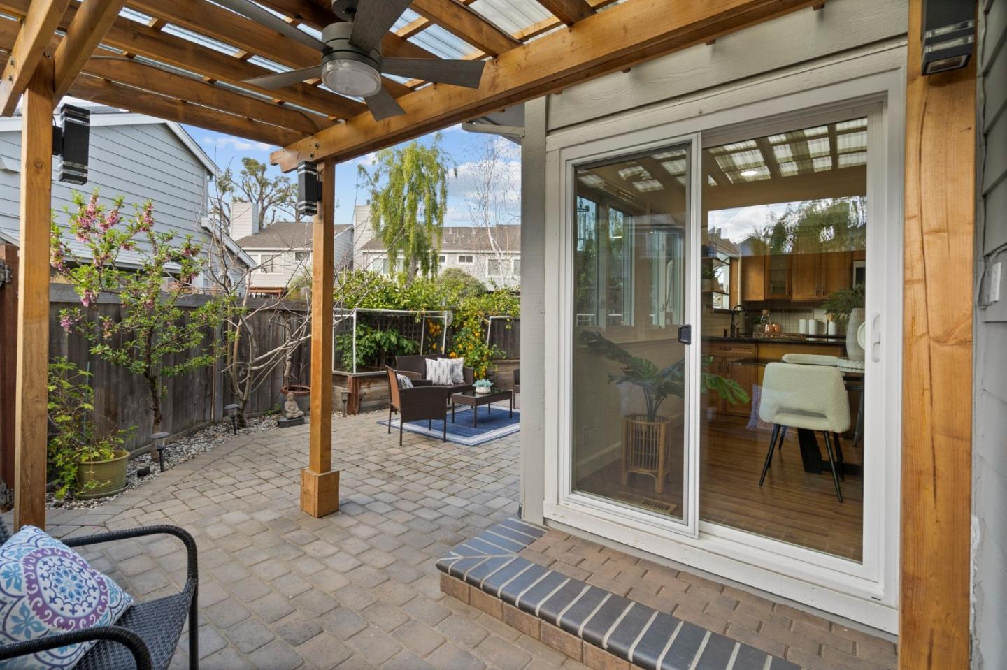 Welcome to your spacious 3 bedroom, 2.5 bath home in Cambrian with top-rated Union schools, nestled in a fantastic neighborhood. This end unit, move-in ready townhouse offers a perfect blend of modern comfort and functionality. The property boasts numerous updates, including purchased solar, stainless steel appliances & gas range, laminate floors throughout, central heat & air conditioning with a smart thermostat, ceiling fans with remote, double-pane windows, recessed LED lights with smart switches, washer/dryer with pedestals, and built-in cabinets with epoxy flooring in the attached 2-car garage with 220v outlet to charge your electric vehicle. Vaulted ceiling, skylight, and many windows brighten the home with abundant natural light. The spacious primary bedroom with walk-in closet, dual sinks, and stall shower is your ideal sanctuary. Appreciate the nature view from the 2nd bedroom as well as room to sip your morning coffee on a serene balcony from the 3rd bedroom. Entertain in the backyard oasis under a pergola with smart fan/lights and added pavers, enjoying fruits from peach, apple, orange, lemon, plum, and cherry trees. With convenient access to shopping, hiking & biking trails, medical offices, and commuter routes, this home is a must see.