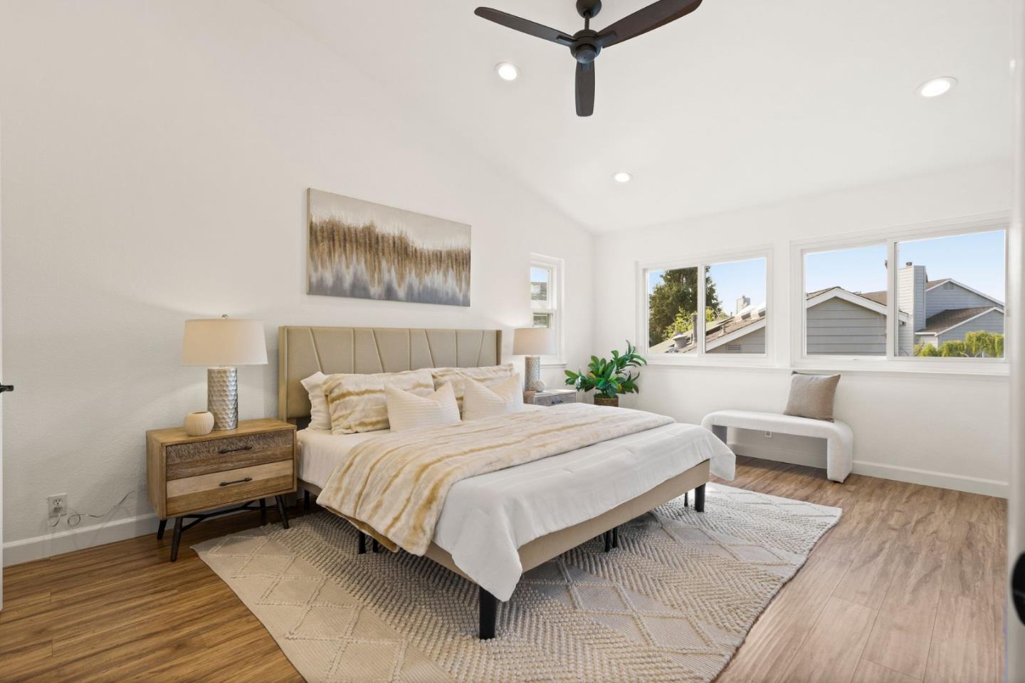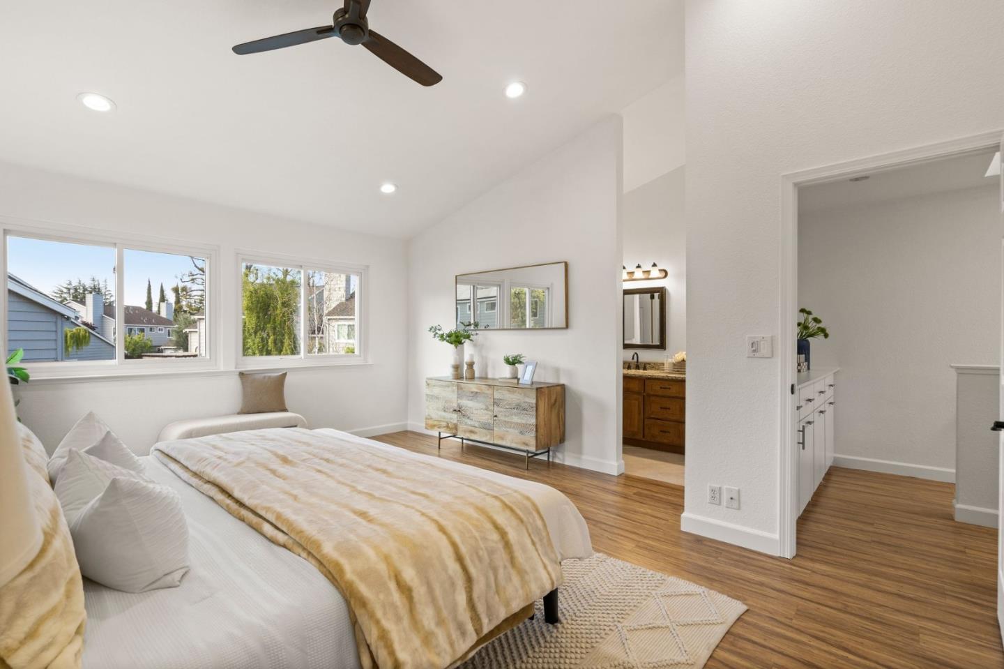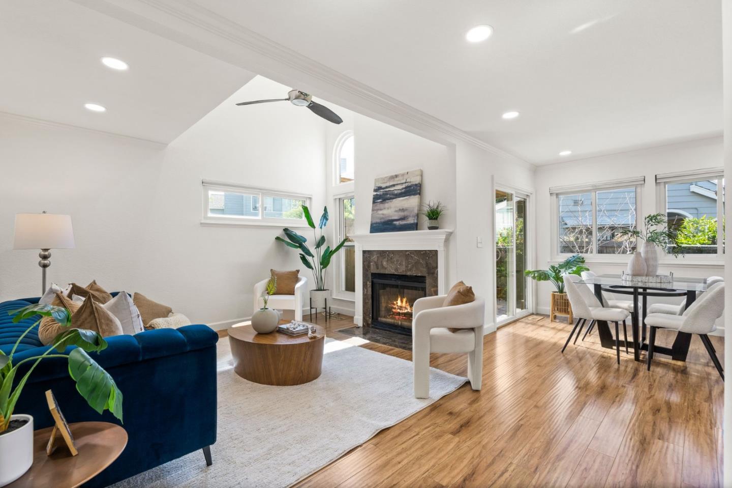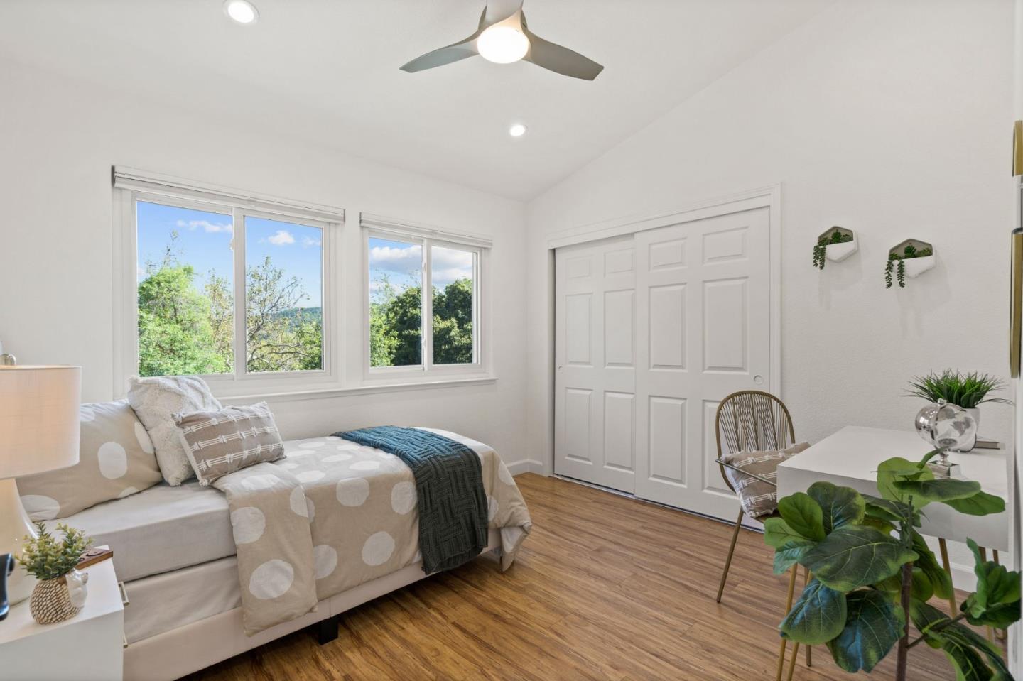 Welcome to your spacious 3 bedroom, 2.5 bath home in Cambrian with top-rated Union schools, nestled in a fantastic neighborhood. This end unit, move-in ready townhouse offers a perfect blend of modern comfort and functionality. The property boasts numerous updates, including purchased solar, stainless steel appliances & gas range, laminate floors throughout, central heat & air conditioning with a smart thermostat, ceiling fans with remote, double-pane windows, recessed LED lights with smart switches, washer/dryer with pedestals, and built-in cabinets with epoxy flooring in the attached 2-car garage with 220v outlet to charge your electric vehicle. Vaulted ceiling, skylight, and many windows brighten the home with abundant natural light. The spacious primary bedroom with walk-in closet, dual sinks, and stall shower is your ideal sanctuary. Appreciate the nature view from the 2nd bedroom as well as room to sip your morning coffee on a serene balcony from the 3rd bedroom. Entertain in the backyard oasis under a pergola with smart fan/lights and added pavers, enjoying fruits from peach, apple, orange, lemon, plum, and cherry trees. With convenient access to shopping, hiking & biking trails, medical offices, and commuter routes, this home is a must see.